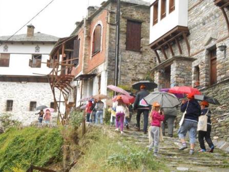 Εντυπωσιασμένοι οι μικροί μας ταξιδιώτες θαύμασαν τον πολιτισμό που μαρτυρούν τα σπίτια, οι λιθόστρωτοι δρόμοι, τα πλατάνια της πλατείας.