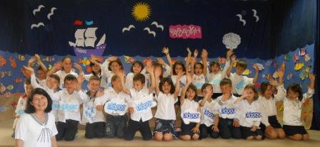 τα κορίτσια και τα αγόρια της Α΄τάξης, με τη δασκάλα τους κ. Νίκη Λειβαδιώτου μας χάρισαν με την χαριτωμένη παιδικότητά τους μια όμορφη καλοκαιρινή παράσταση σκορπίζοντας σε όλους μας την δροσιά της θάλασσας και την έναρξη του καλοκαιριού.